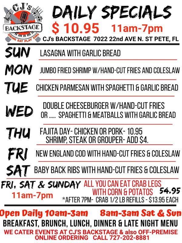 (727) 202- 8881 By providing your phone number in the form, you are agreeing to receive marketing messages from CJ's Backstage. Message and data rates may apply. Msg frequency varies. Reply STOP to opt out.